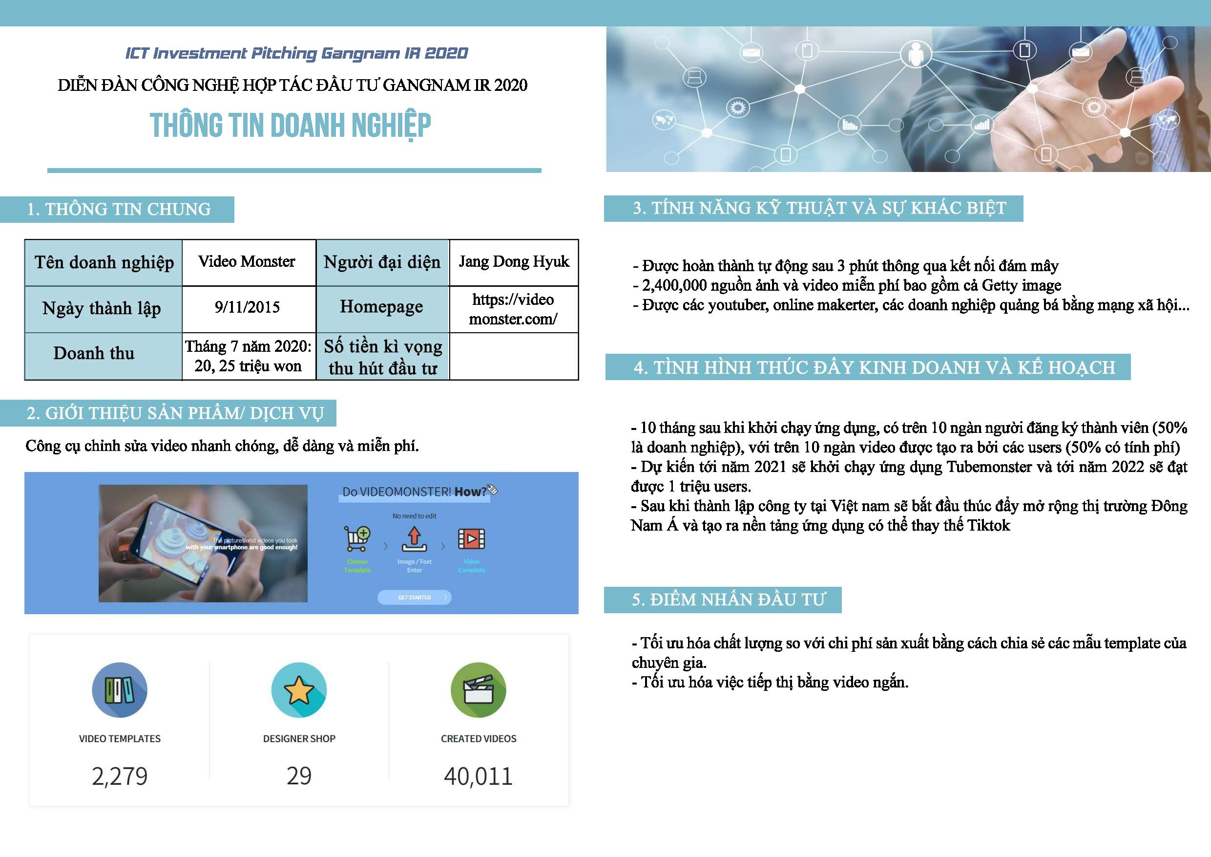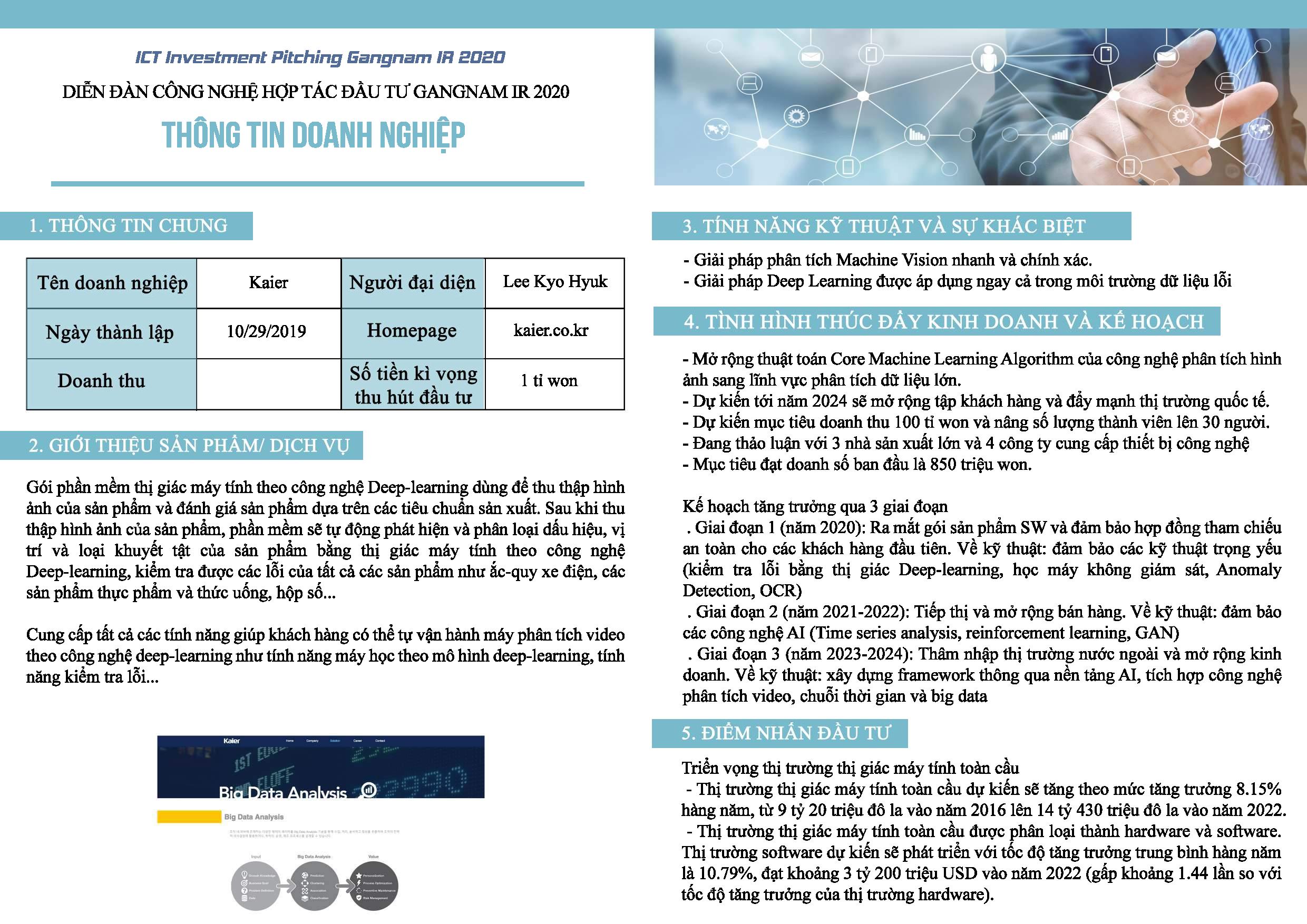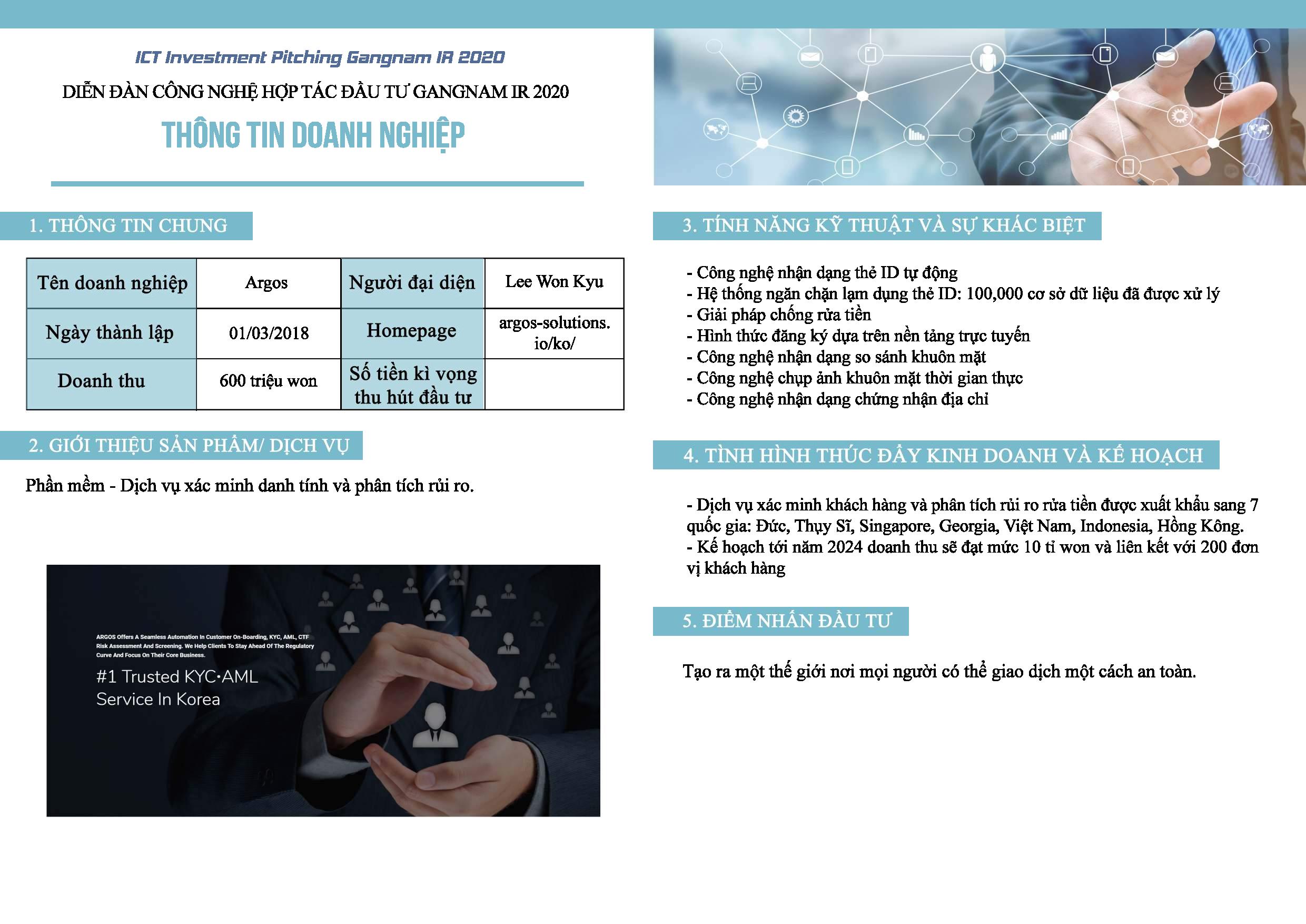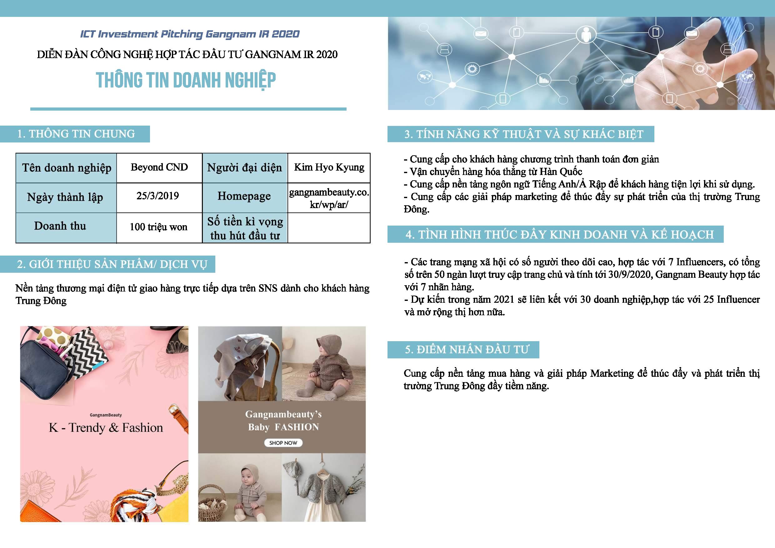 Tiếp nối sự thành công của diễn đàn đầu tiên được VNC tổ chức vào năm 2019 đã kết nối nhiều doanh nghiệp Hàn Quốc với các doanh nghiệp Việt Nam cùng bắt tay phát triển thị trường, diễn đàn công nghệ hợp tác đầu tư Gangnam IR 2020 với sự đồng hành của Vườn Ươm Khởi Nghiệp Việt trong phần tập huấn hướng dẫn các công ty Hàn Quốc tham dự kỳ này cách thức để kêu gọi vốn và hợp tác từ các công ty Việt Nam.