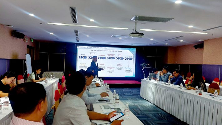 • Bà Bùi Thị Thủy Tiên – TGĐ Vườn Ươm Khởi Nghiệp Việt và Sàn Gọi Vốn Việt Nam, trình bày mô hình tổ chức hệ sinh thái KNĐMST cấp tỉnh gắn với PII & GII và giải pháp kết nối – phối hợp đa bên để tối ưu vận hành.